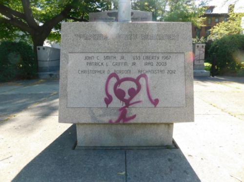ITHACA, N.Y. (WHCU) — A war memorial in Ithaca was vandalized and police are looking to the public for help in identifying suspects.